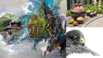 Kerstmanifestatie Schilderijen, acryl met materialen op doek.