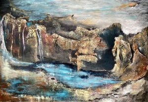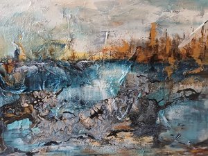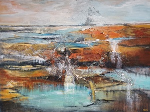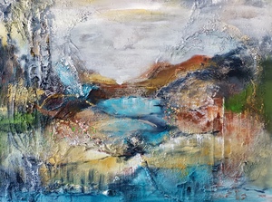 2023Waterlandschap, acryl, materialen. Linnen doek met aliminium frame.