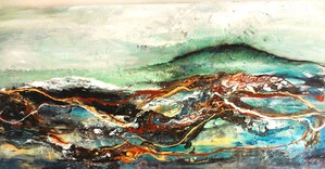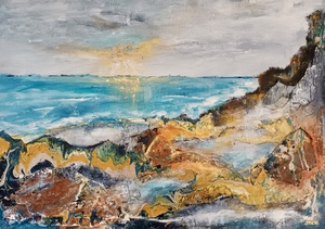 2023Zeezicht met acryl en materialen. Er aan toegevoegd acryl gieten voor een speels effect.