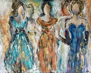 2025Acryl, dame, figuratief, materialen, leer, structuur pasta, rood, okergeel, wit, oranje.